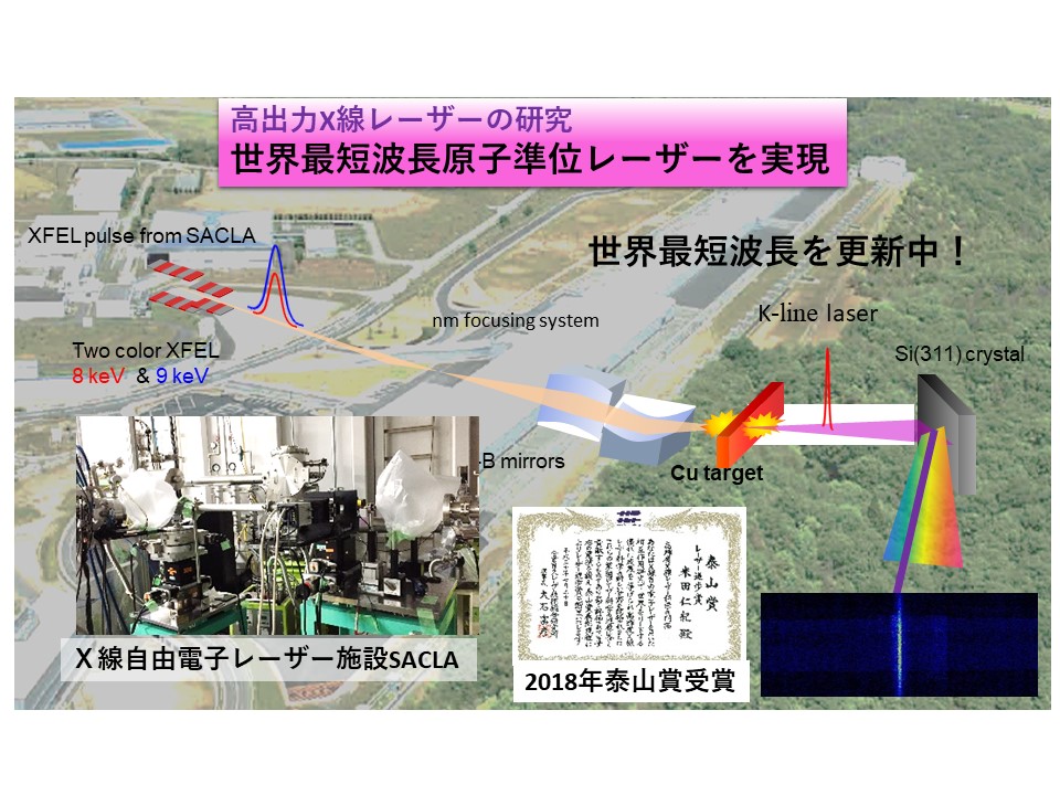 米田研究室では兵庫県にあるSPring-8の施設でX線自由電子レーザー(X-ray Free Electron Laser: XFEL)装置を利用した実験を行なっています。 XFEL、通称SACLAでは2012年3月より共用利用が開始され、様々な分野の研究に利用されています。また、その試験加速器として建設された極端紫外線(Extream Ultra Violet: EUV)の自由電子レーザーでは高強度で安定した利用が可能となりました。 これらのEUV、X線・フ自由電子レーザーの登場により、高光子エネルギー領域においても利用できる光がインコヒーレントなものからコヒーレントなものになったことで時間的、空間的に集光することでこれまでにない高強度な光子場を作り出すことに成功しました。